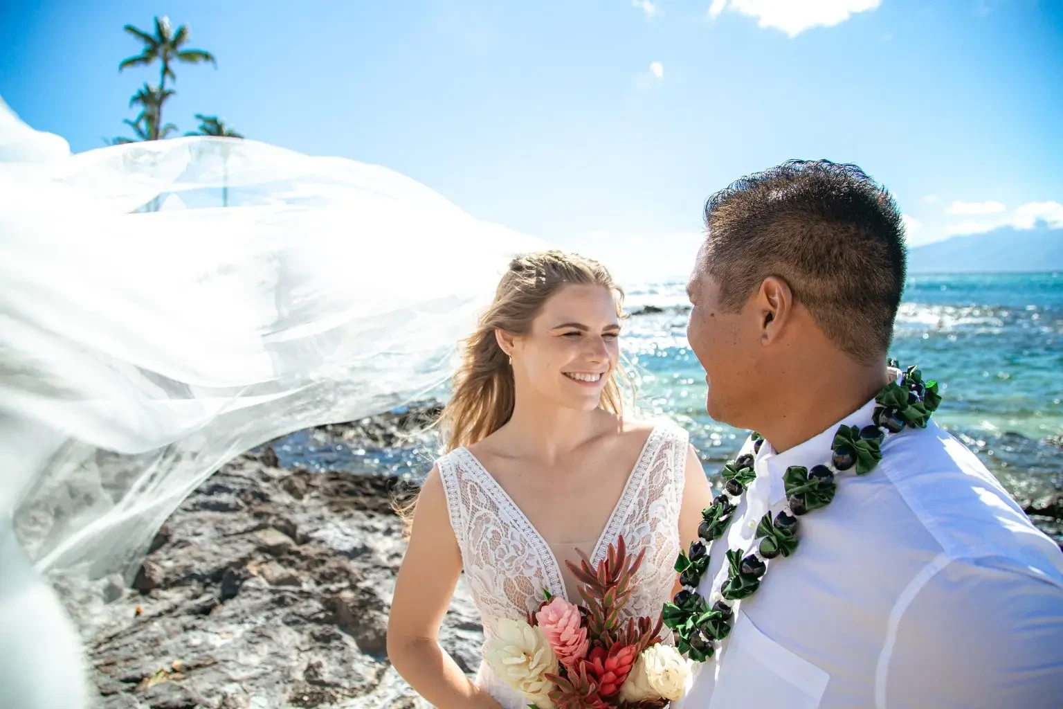 Things started falling into place as the power of love and community came together for Sarah and Kawehi. They were gifted a beautiful wedding dress from Elly’s Formal Wear & Bridals so she could look and feel her best self on her wedding day for their intimate beach minimony.